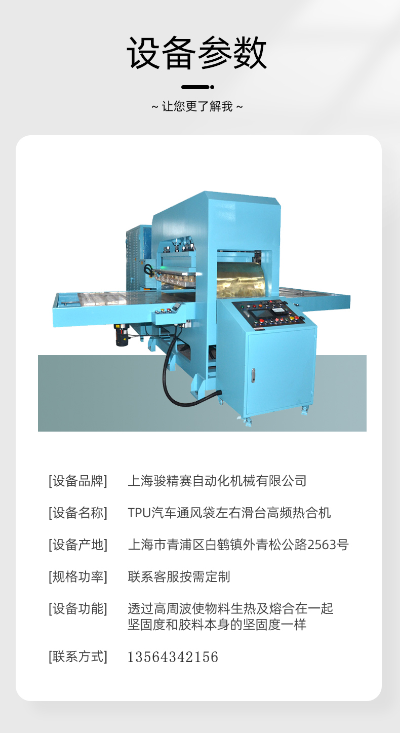 TPU汽車通風袋高頻熱合機 咨詢熱線:+8613564342156 在線咨詢 產(chǎn)品詳細 本信息鏈接地址:/gaopinji/417.html 標簽: 相關(guān)推薦: 上一篇:PVC沼氣池軌道式高頻熱合機 下一篇:TPU冷敷理療水囊高頻機 用手機看 拍下二維碼,信息隨身看 試試用手機掃一掃, 在你手機上繼續(xù)觀看此頁面。